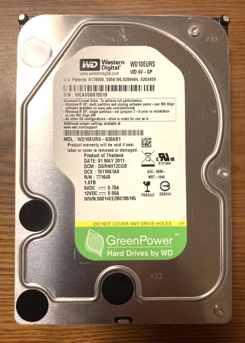 - 【状態◎】Western Digital ウェスタンデジタル WD AV-GPシリーズ WD10EURS 3.5インチ HDD 1TB(AV機器に特化した高信頼HDD)