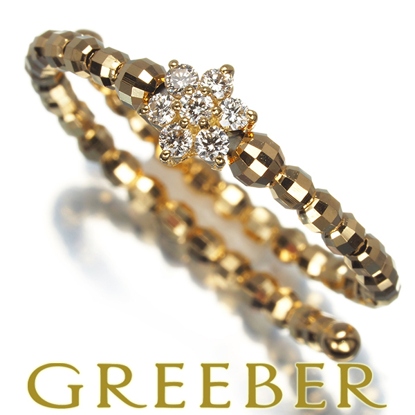 > ダイヤ ダイヤモンド 0.10ct フラワー フリーサイズ リング K18YG/ワイヤー 指輪 GENJ