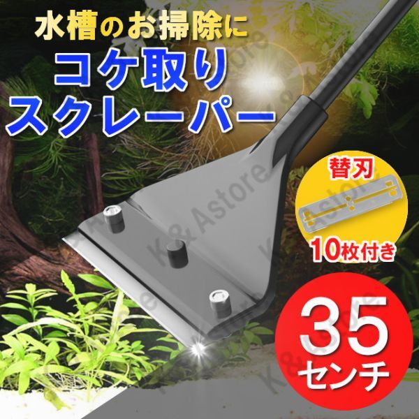 > コケ取りスクレーパー 替刃10枚付き スクイージー 水槽 コケ ガラス 掃除 苔取り コケ落とし プロレイザー アクアリウム 水草 除去 35cm