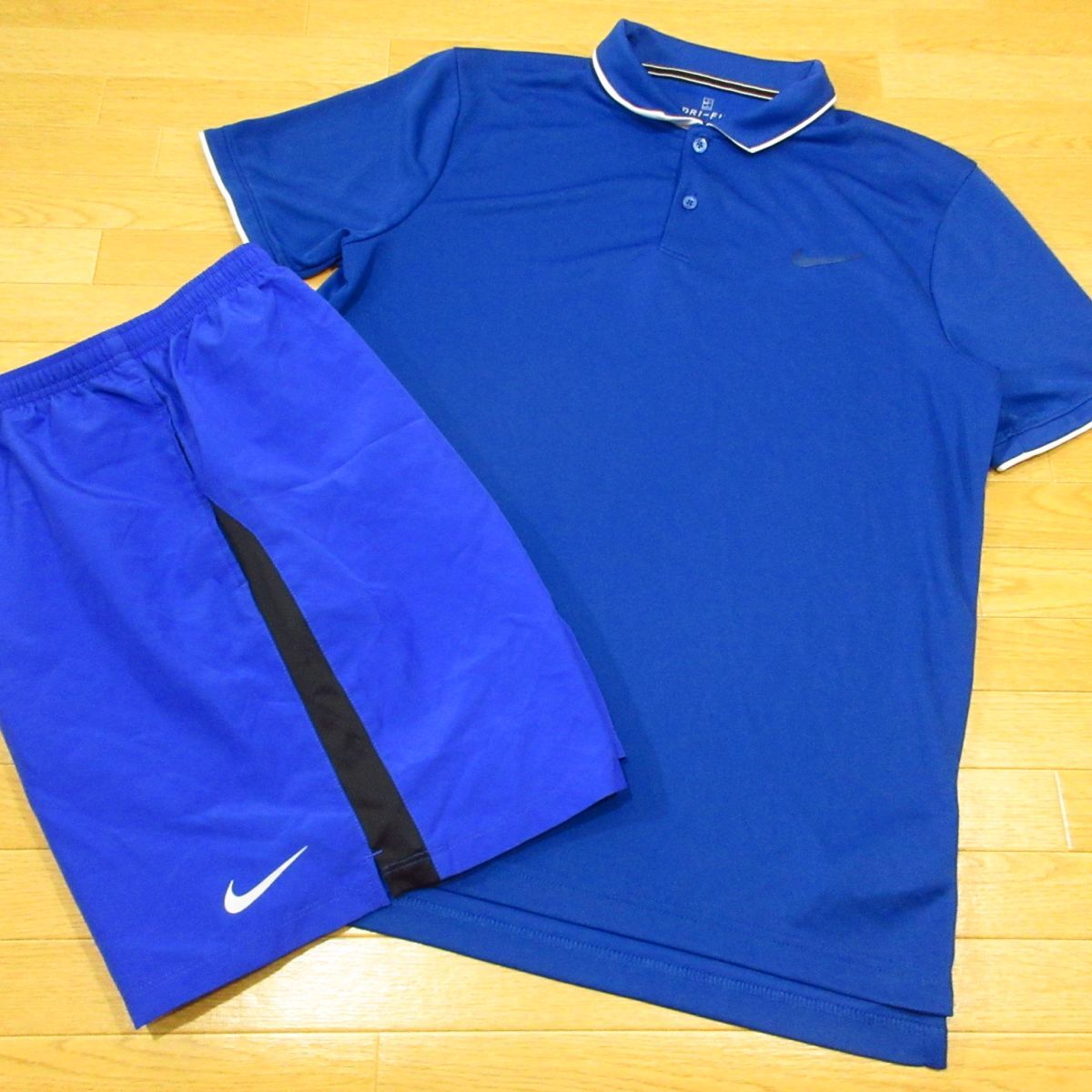 > ◎極美品!L 上下セット NIKE TENNIS ナイキ テニス ジャージ ポロシャツ & ハーフパンツ ショートパンツ DRI-FIT 速乾 メンズ 青◆BA3448