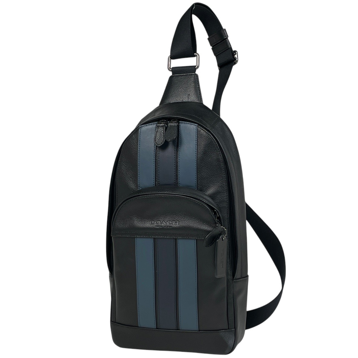 > コーチ COACH ロゴ ボディバッグ ショルダーバッグ ボディバッグ レザー ブラック ブルー F49318 メンズ 【中古】