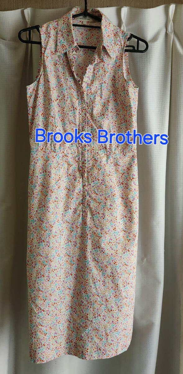 - 大変美品 BROOKS BROTHERS 可愛いシャツワンピース コットン 花柄 の ノースリーブワンピース