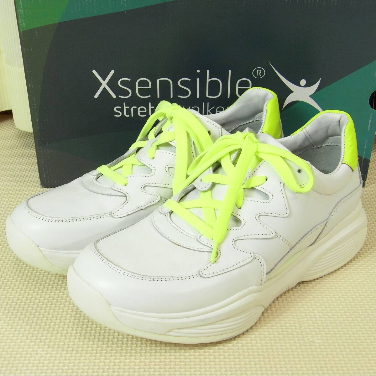 > ほぼ未使用stretch Walker Xsensible ウォーキングシューズ24.5~25cm幅広タイプ ニューストレッチウォーカー白のさか外反母趾スニーカー