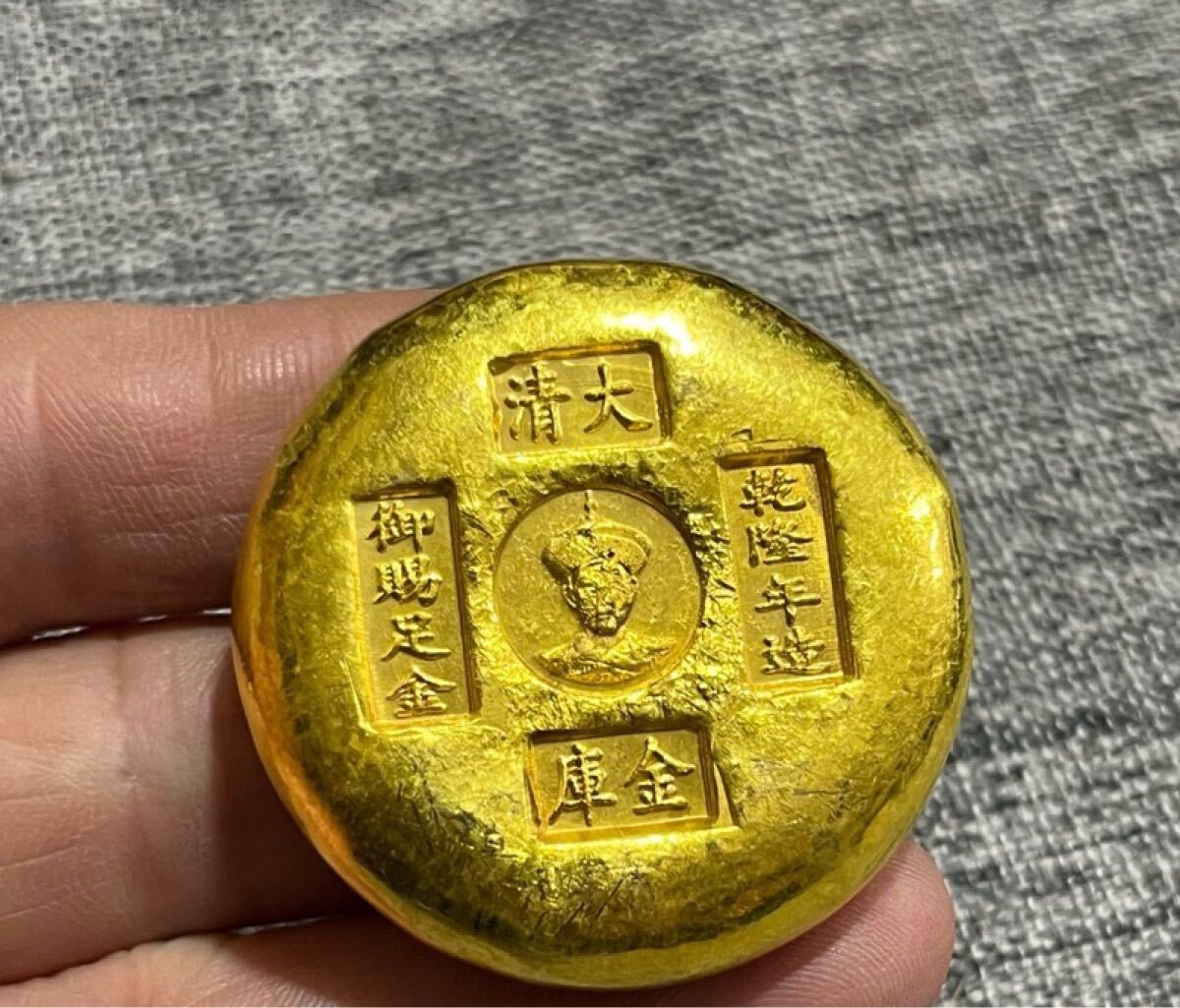 - 希少 中国 大清金庫 乾隆年造 御賜金足古銭 骨董品 大型硬貨 金塊 金錠 金貨 金条 足金 足赤 漢寶 コレクション 開運金塊 清時 古銭 硬貨