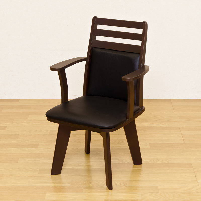 > 肘掛け付きダイニングチェア 回転式 イス 1脚 天然木製 ハイバックチェア BH-04C ダークブラウン(DBR)