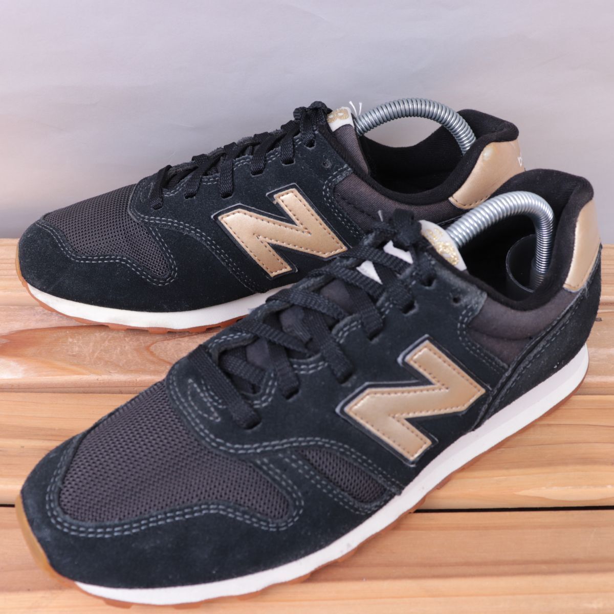 > z1779【373】ニューバランス US9.5 26.5cm/黒 ブラック 金 ゴールド 白 ホワイト newbalance レディース スニーカー 中古