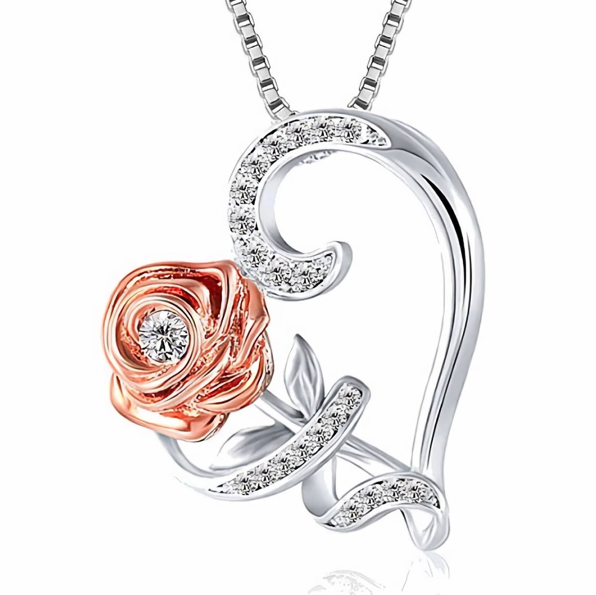 - 新品★送料無料★贈り物ピンクローズ ダイヤ薔薇ハート プラチナ仕上 925シルバーネックレス 誕生日プレゼント秋祭母日ギフト国内発送