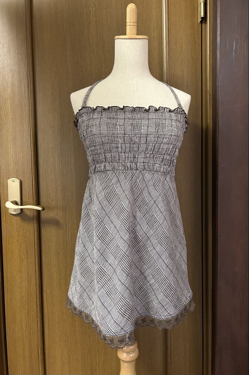 - me jane チェック柄 ノースリーブチュニック キャミ ベアトップ ミージェーン キャミソール ブラウン 秋