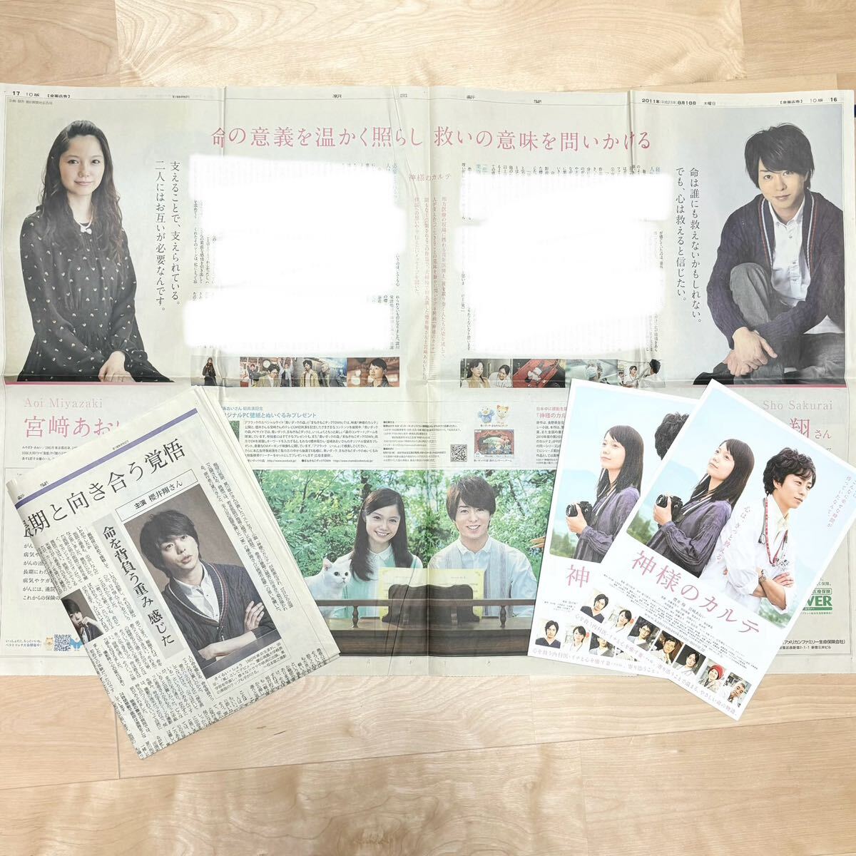 - 嵐グッズ 櫻井翔 神様のカルテ 2011 朝日新聞全面広告 宮崎あおい 朝日新聞 一面広告 ARASH 平成レトロ 当時物 映画フライヤー
