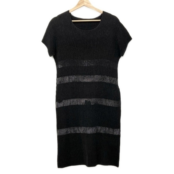 > スペッチオ SPECCHIO サイズ40 M - 黒×シルバー レディース クルーネック/半袖/ロング/プリーツ/ラメ/ボーダー 美品 ワンピース