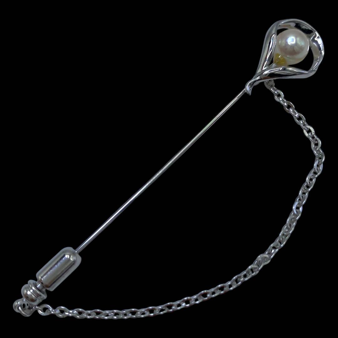 - 美品 ピンブローチ パール 真珠 シルバー刻印 6mm チェーン