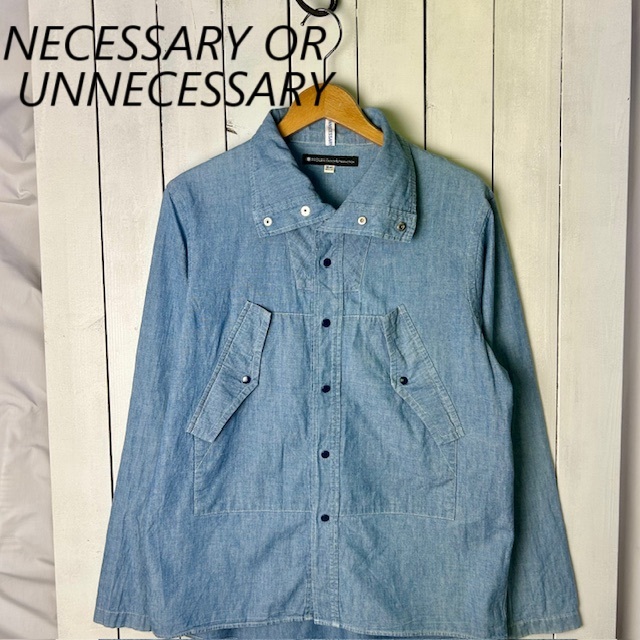 > sh●A36 NOUN 薄手 シャンブレーシャツジャケット M 38/40 薄青 長袖 綿 日本製 NECESSARY OR UNNECESSARY インディゴ