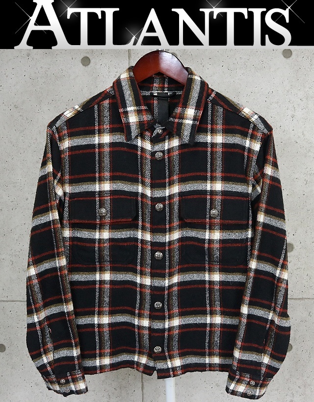 - CHROME HEARTS 銀座店 クロムハーツ WORKDOG ワークドッグ クロスボタン チェックシャツ 長袖 メンズ SV925 size:M 黒系 100355