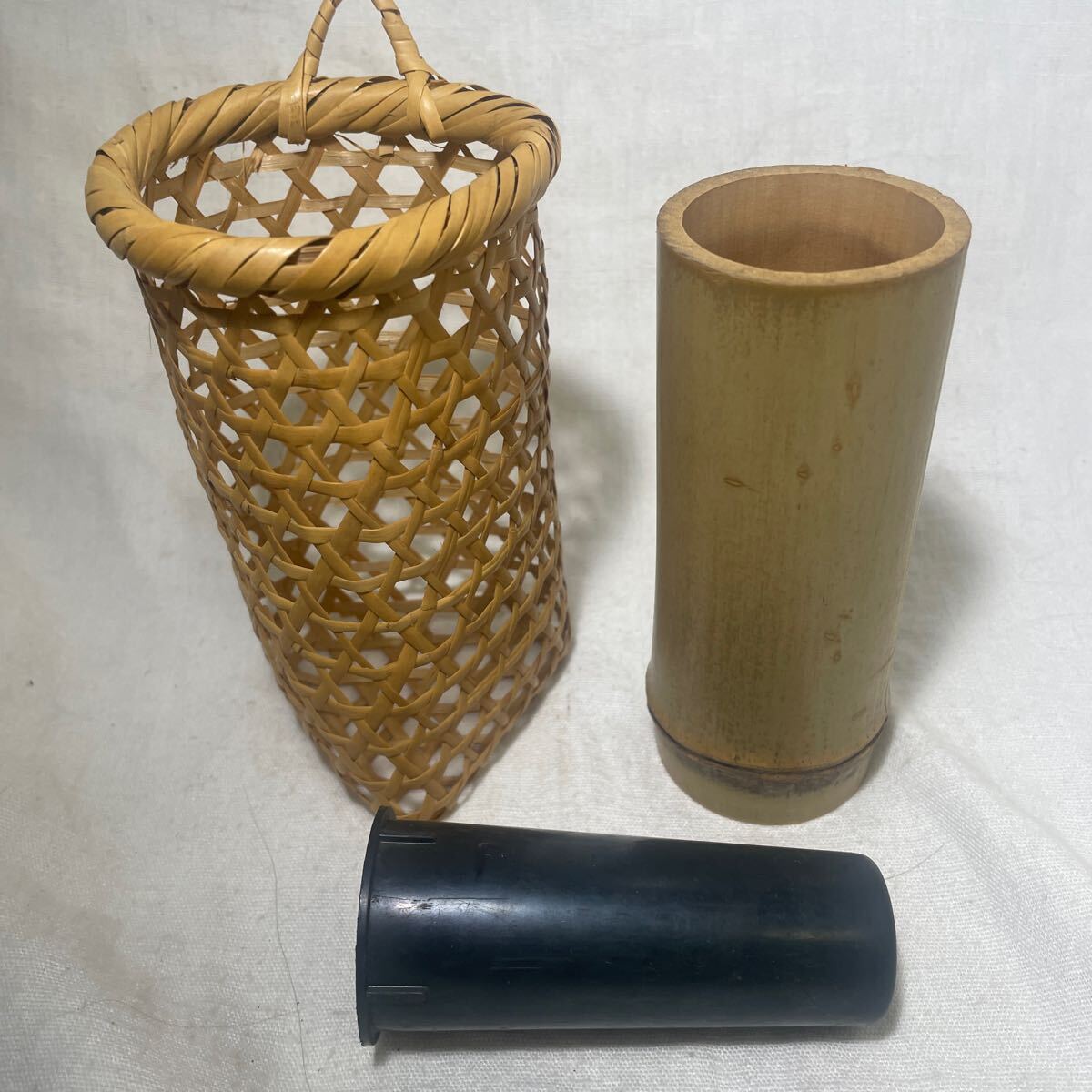 - ◯ 白竹 竹製 花器 小物入れ 壁掛け 網 ◯Xー174