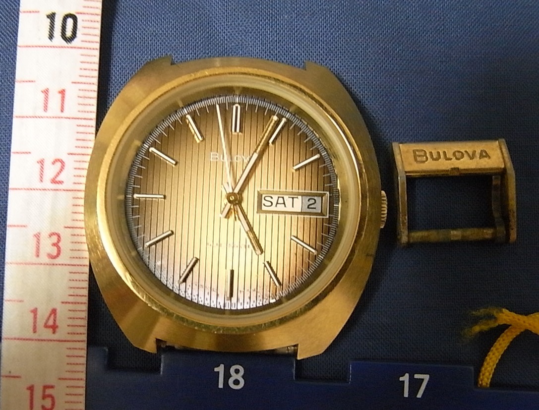 - 動作品 BULOVA ブローバ 変わり文字盤 メンズ腕時計 自動巻き 純正尾錠付 N4 ゴールド デイデイト 11AOACB automatic swiss made