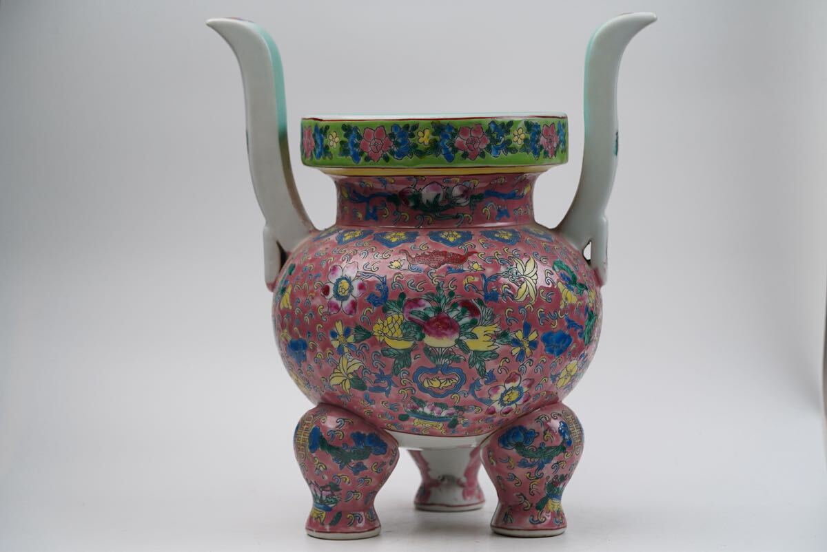 - 中国古美術 清時代 琺瑯彩 三足 香炉 陶磁器 骨董 古玩 時代物 中国美術 古美術 骨董品 唐物 当時物 高さ30cm
