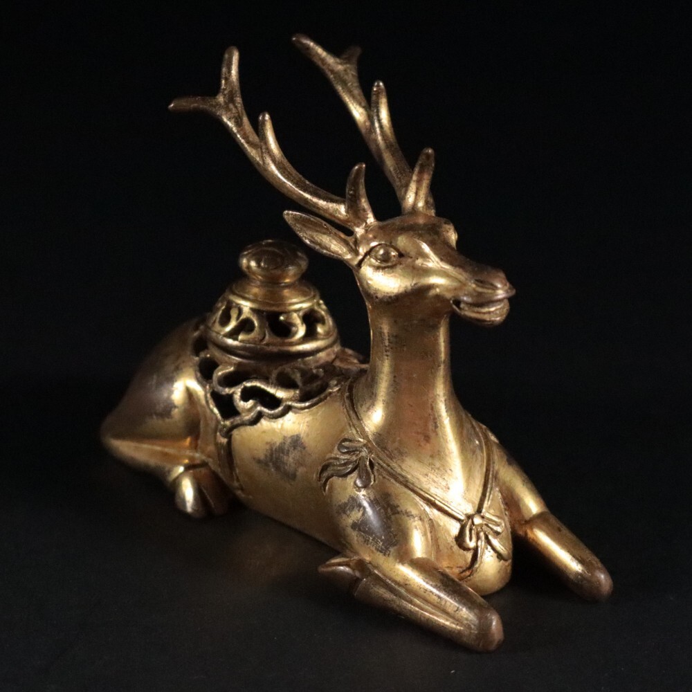 - 中国美術 古銅 金銅 銅製 塗金 鍍金 鹿 香炉 / 香道具 香爐 書道具 文房四宝 文鎮 中国 中國 古玩 擺件 唐物 時代物 骨董品 古美術品