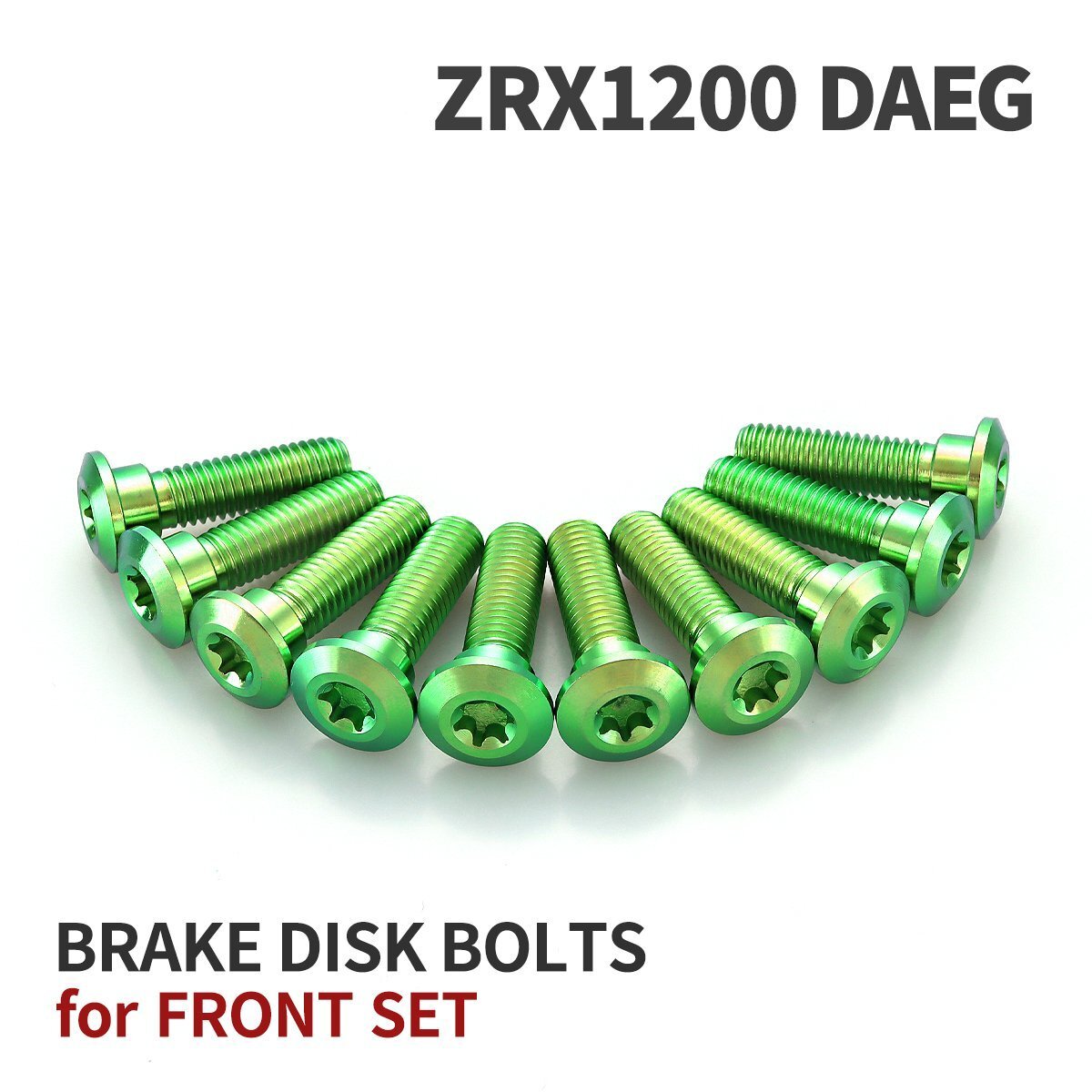 > ZRX1200 DAEG 64チタン ブレーキディスクローター ボルト フロント用 10本セット M8 P1.25 カワサキ車用 グリーン JA22002