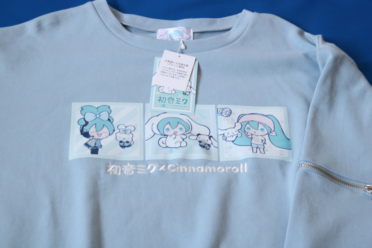 > 初音ミク×シナモロール トレーナー サックス レディース L 両袖ジッパー サンリオ 新品 未使用