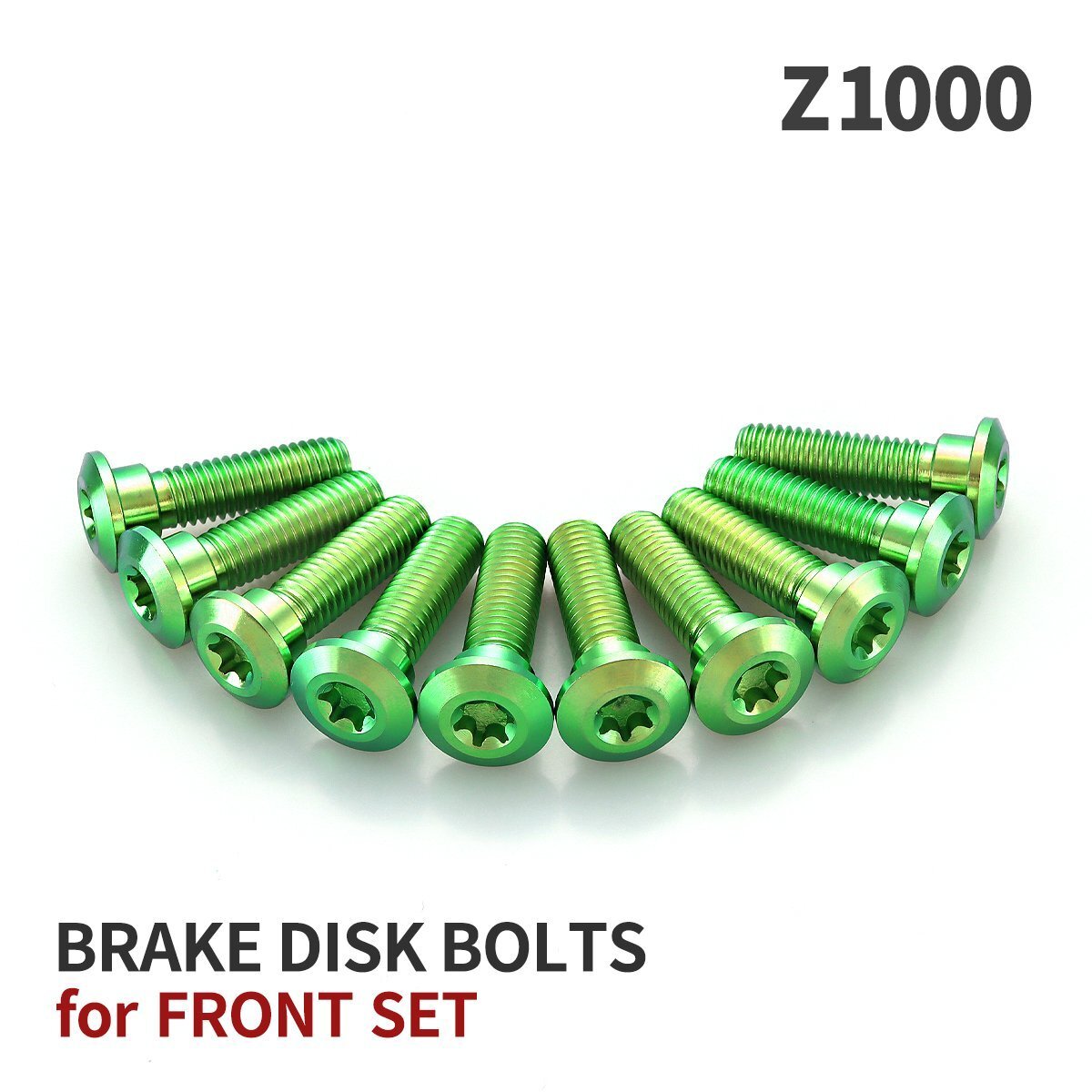 > Z1000 64チタン ブレーキディスクローター ボルト フロント用 10本セット M8 P1.25 カワサキ車用 グリーン JA22002