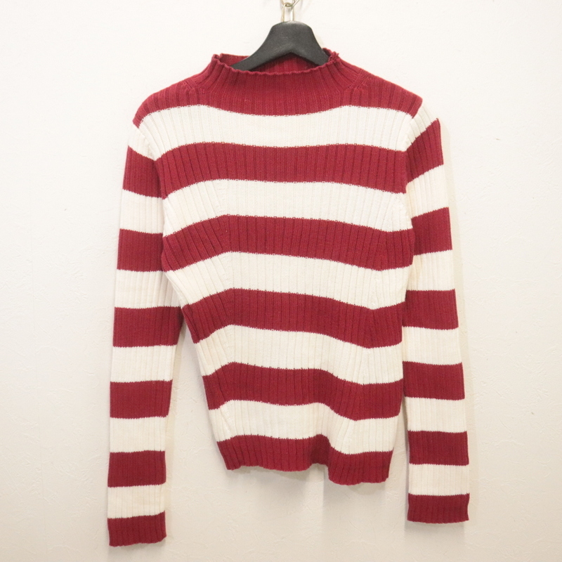 - m106 90sビンテージ HOLTRENFREW コットンニットセーター■1990年代製 表記Mサイズ 赤 レッド レディース ボーダー アメカジ 古着 激安 80s