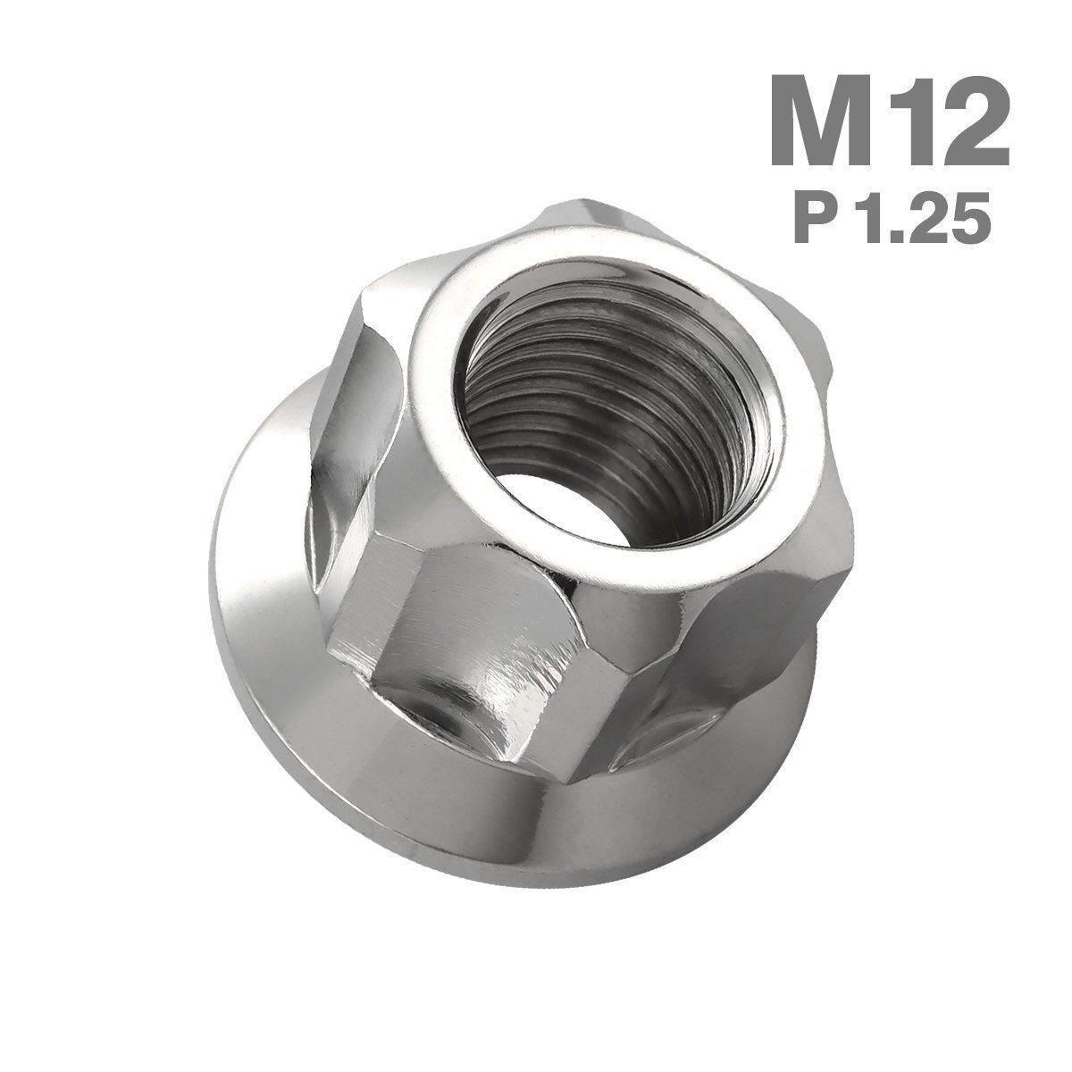 > M12 P1.25 六角ナット ロング貫通ナット マフラーナット フランジ付き ステンレス シルバー カウル フェンダー バイク 1個 TF0055