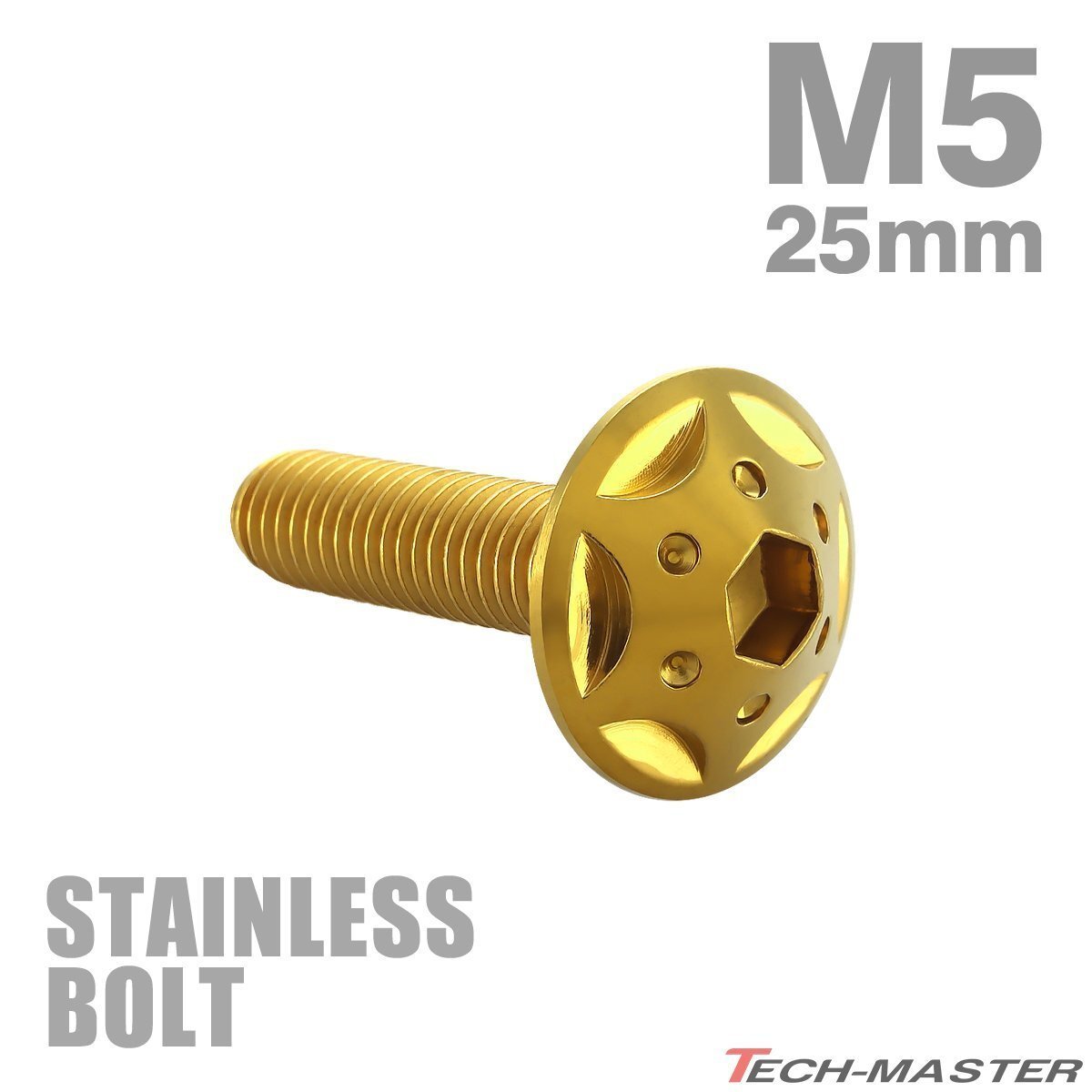 > M5×25mm P0.8 ボタンボルト スターホールヘッド ステンレス ゴールド カウル フェンダー 車 バイク カスタム 1個 TR0231
