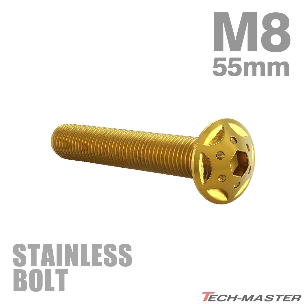 > M8×55mm P1.25 ボタンボルト スターホールヘッド ステンレス ゴールド カウル フェンダー 車 バイク カスタム 1個 TR0443