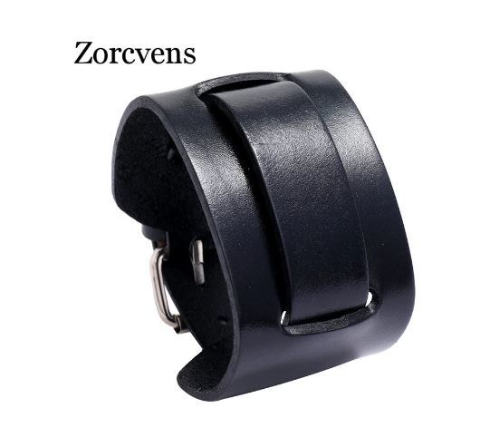- 送料無料 未使用品 ワイド ブレスレット 幅広 革 レザー ブラック 黒色 バンド ジュエリー