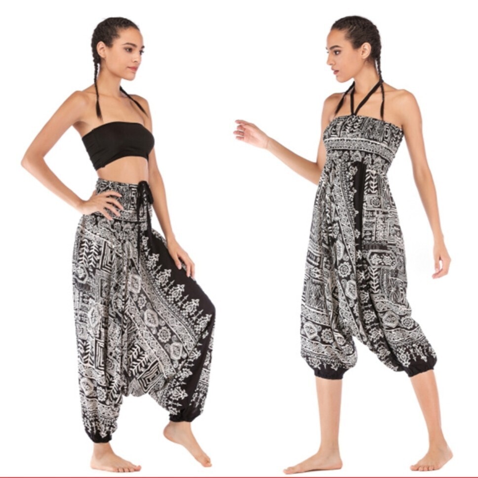 - サルエルパンツ アラジンパンツ レディース エスニック タイ 2WAY バルーン ロングパンツ レーヨン ゆったり ウエストゴム オールインワン
