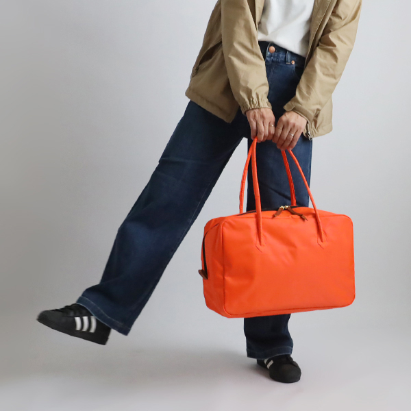 - 秋支度SALE Lサイズ 四角スクエア ボストン バッグ パラシュート防水ナイロン オレンジ P52D