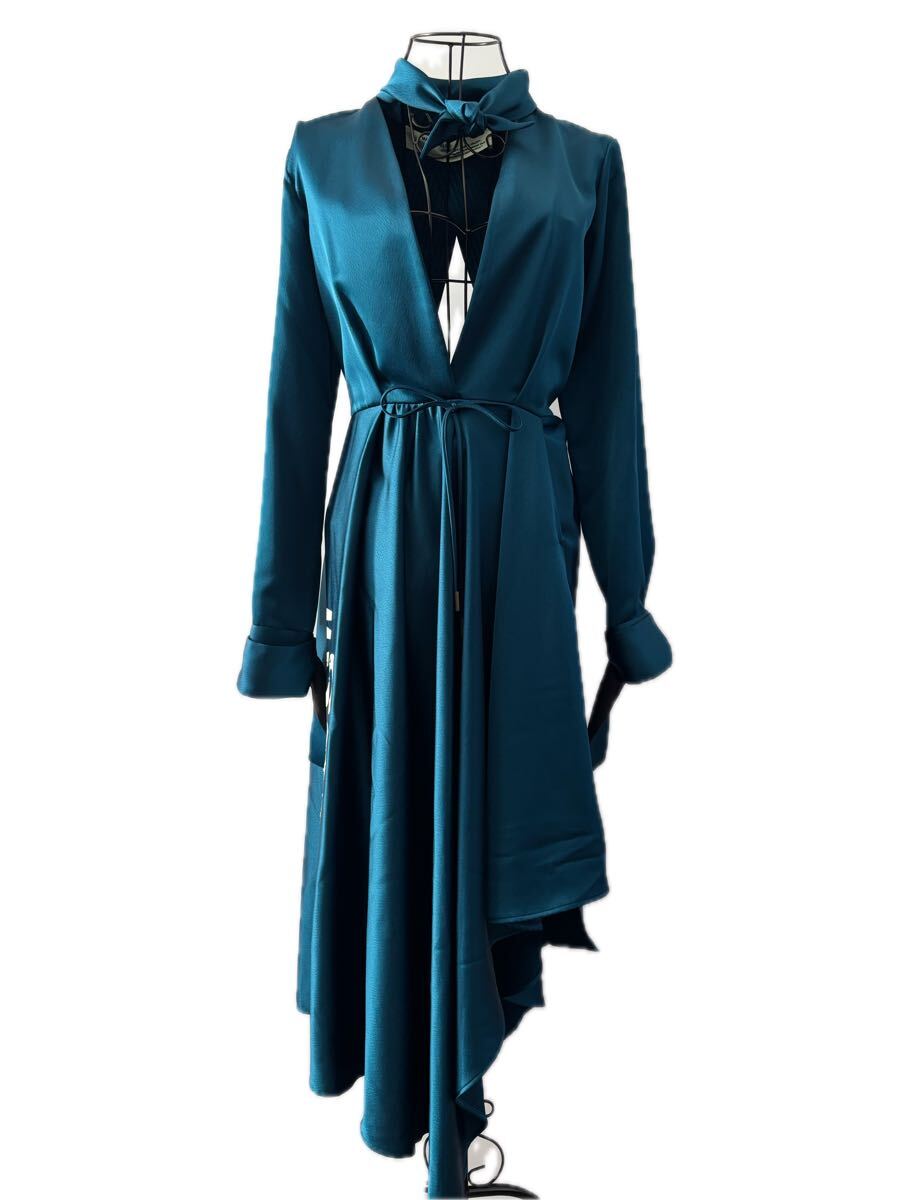 - OFF-WHITE オフホワイト イタリア製 サテン ロングドレス ワンピース 長袖 グリーン プリント ダンス 衣装