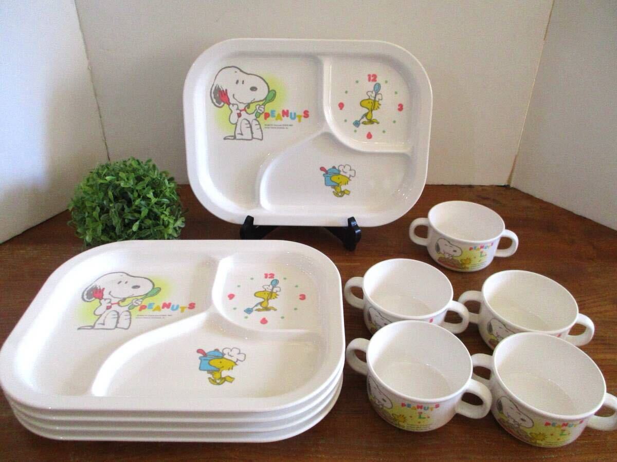 - 【美品】Richell リッチェル スヌーピー PEANUTS ランチプレート5枚&スープカップ5個 合計10点セット※シール跡あり メラミン 軽量 子供用