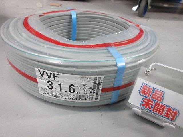 - 600Vビニル絶縁ビニルシースケーブル平形(100m)(灰)(新品未開封) VVF3×1.6mm
