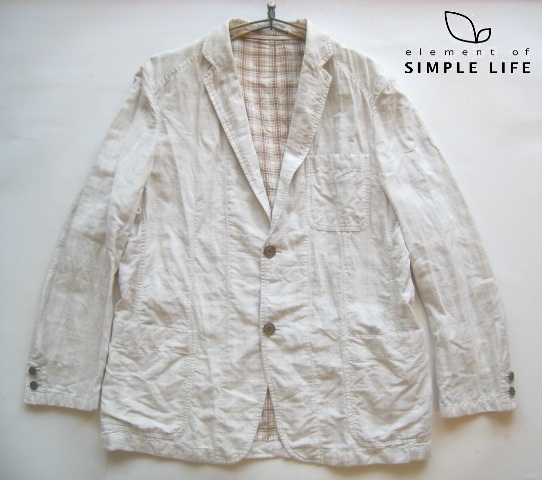 - 美品2.4万!!シンプルライフ SIMPLE LIFE*麻36% リネンコットンダブルガーゼ2つボタンアンコンジャケット LL 白×茶 ダーバン D'URBAN