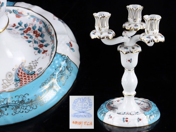 - 魁◆本物保証 ヘレンド トゥッピーニの角笛 キャンドルホルダー 燭台 3本立て 高さ22㎝ 希少!!