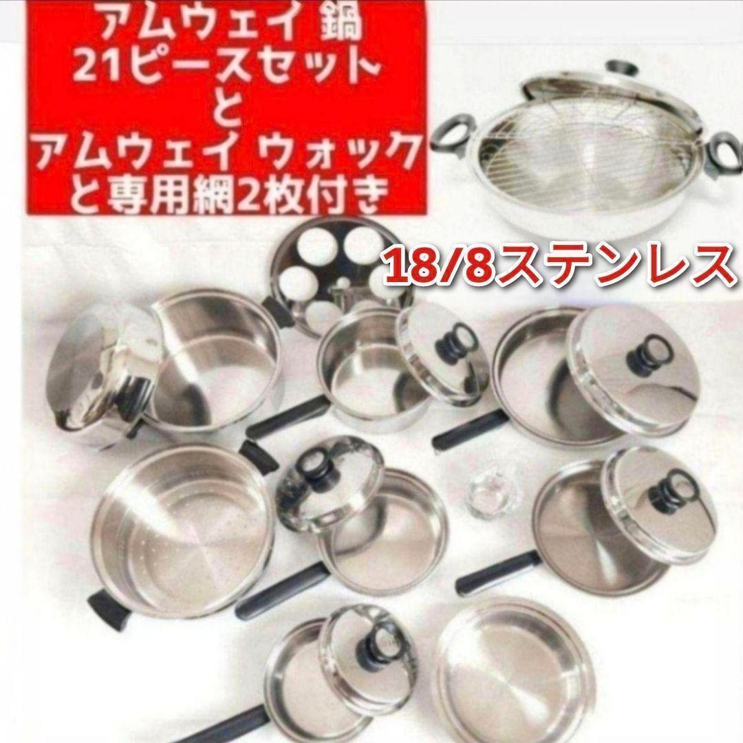 - amway アムウェイ 希少鍋 21ピースセット と ウォック 網2枚付き @