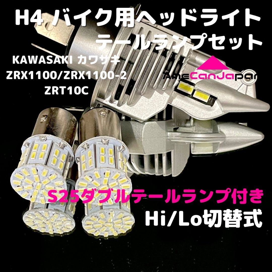 - KAWASAKI カワサキ ZRX1100/ZRX1100-2 ZRT10C LEDヘッドライト H4 Hi/Lo バルブ バイク用 1灯 S25 テールランプ2個 ホワイト 交換用