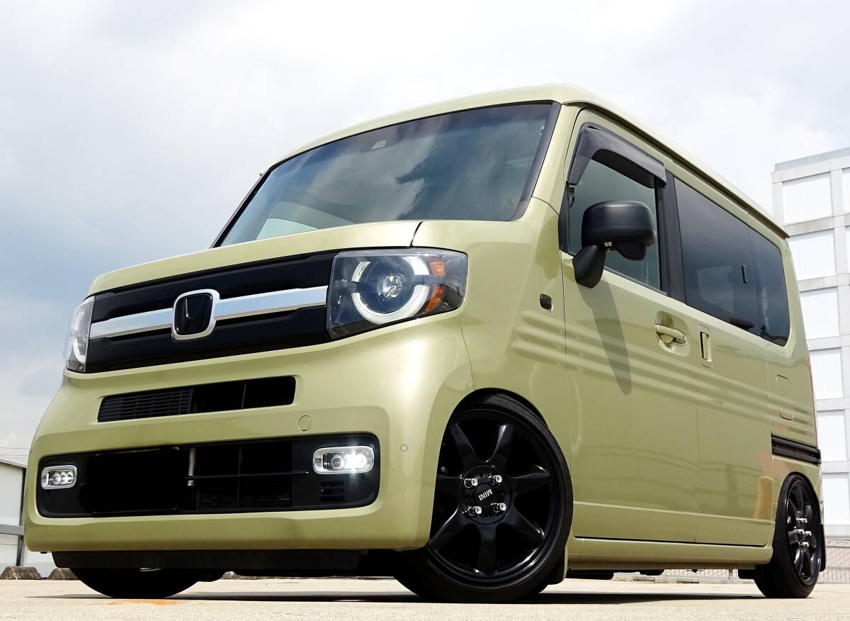 - 検8年12月!4WDターボの快適車中泊ふかふかソファーベット仕様★カッコ可愛いN-VAN FUN!ホンダセンシング MINI16インチ&車高調 ナビドラコレ