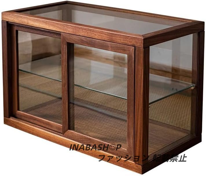 - 無垢材ガラス収納キャビネットブラックウォールナットデスクトップ多層ディスプレイキャビネットティールームテディスプレイキャト防塵棚