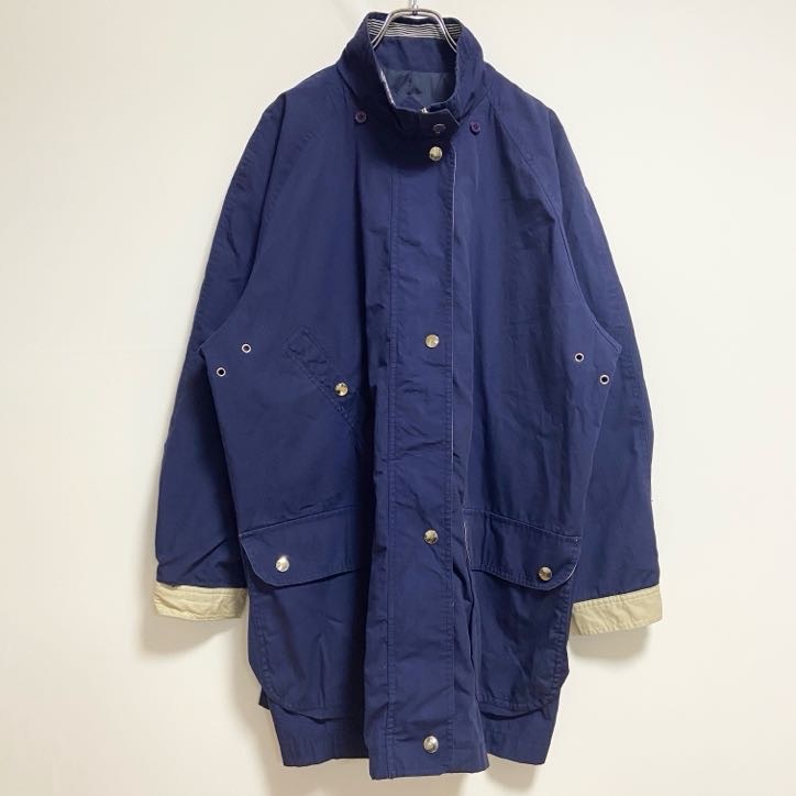 - 古着 used 長袖ハイネックブルゾン 厚手アウター コート ネイビー 秋冬服 レトロ ビッグシルエット XLサイズ
