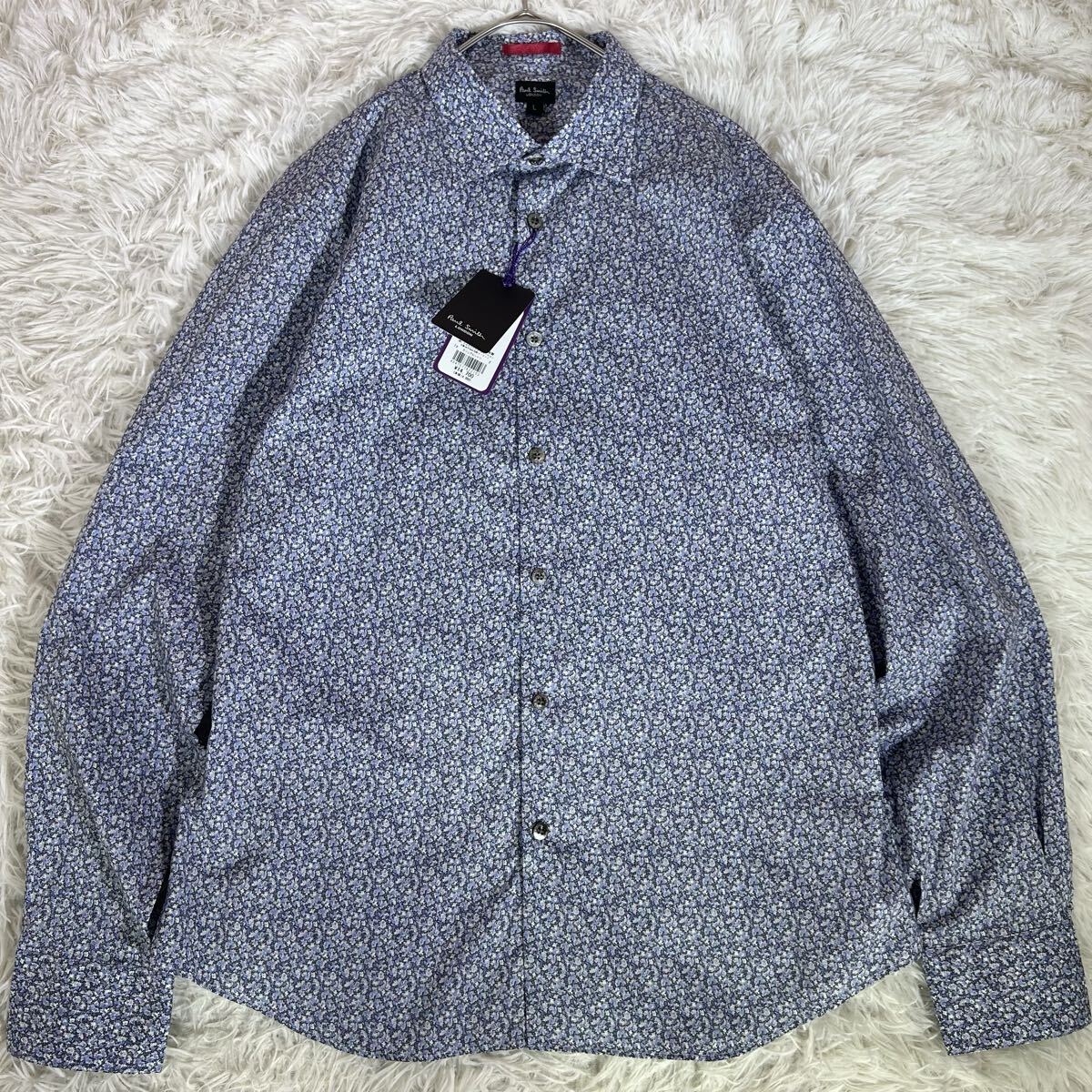 - 【未使用タグ付】Paul Smith LONDON ポールスミス 長袖シャツ 総柄 花柄 Lサイズ ブルー系 メンズ カジュアル コットン素材 日本製