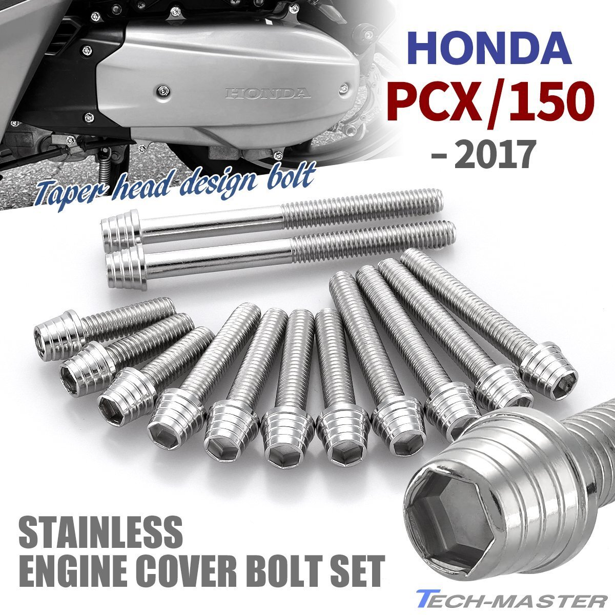 - PCX PCX150 ~2017年 クランクケースカバーボルト 13本セット ステンレス製 テーパーシェルヘッド ホンダ車用 シルバーカラー TB6051