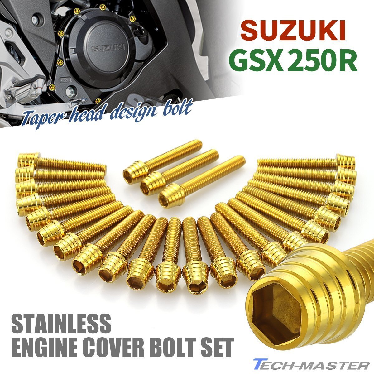 > GSX250R エンジンカバー クランクケース ボルト 25本セット ステンレス製 テーパーシェルヘッド スズキ車用 ゴールドカラー TB9027