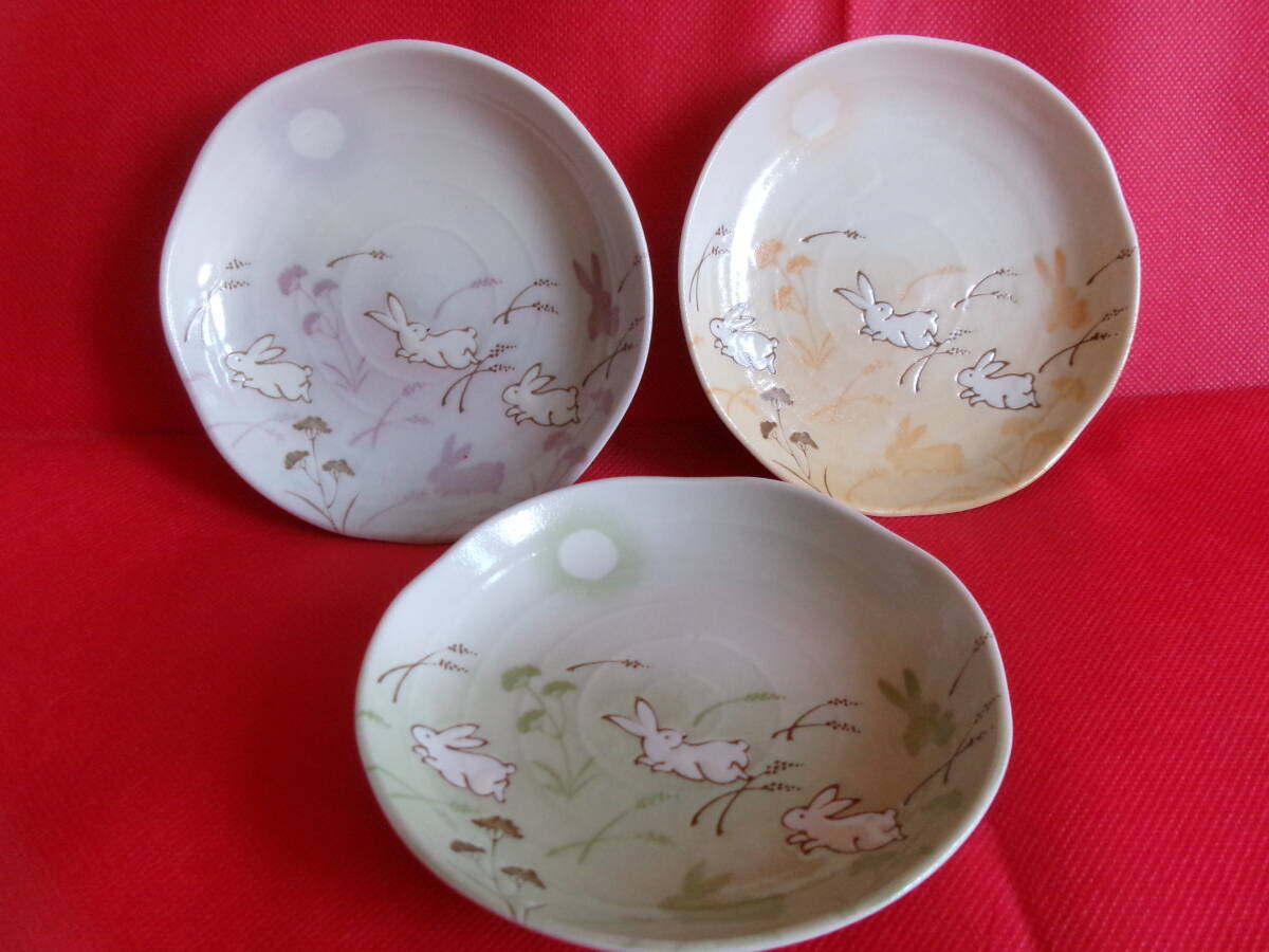 - 未使用品 竹久夢二 うさぎ柄 取皿 銘々皿 中皿 3枚セット