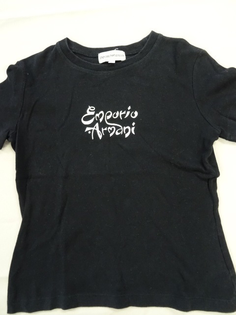 > EMPORIO ARMANI エンポリオアルマーニ Tシャツ レディーストップス ブラック 半袖 カットソー Sサイズ 古着 USED