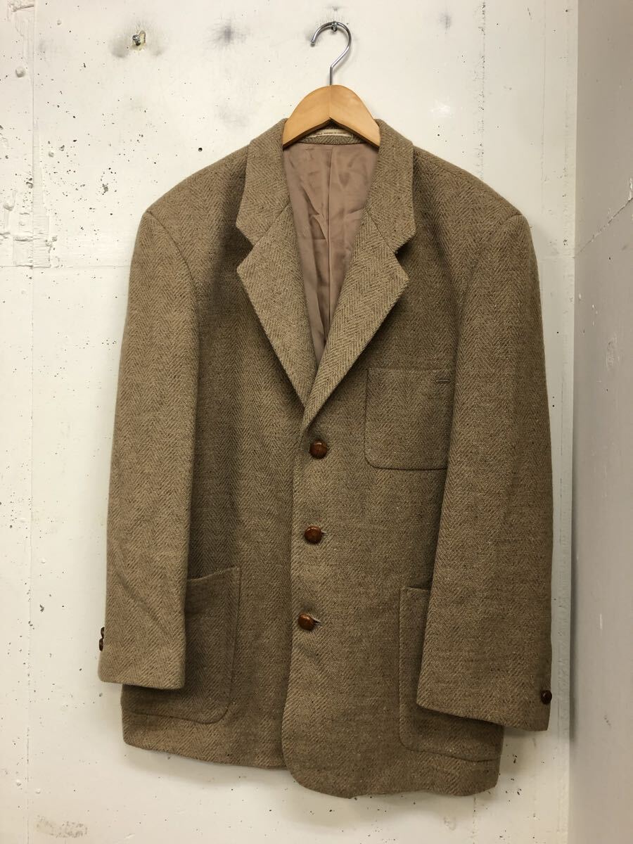 - Papas パパス 秋冬 英国製 SYDNEY H SHAW生地★ ウール ツイード テーラード ジャケット Sz.L 46 M 日本製 ネップ ベージュ ロゴ総柄裏地