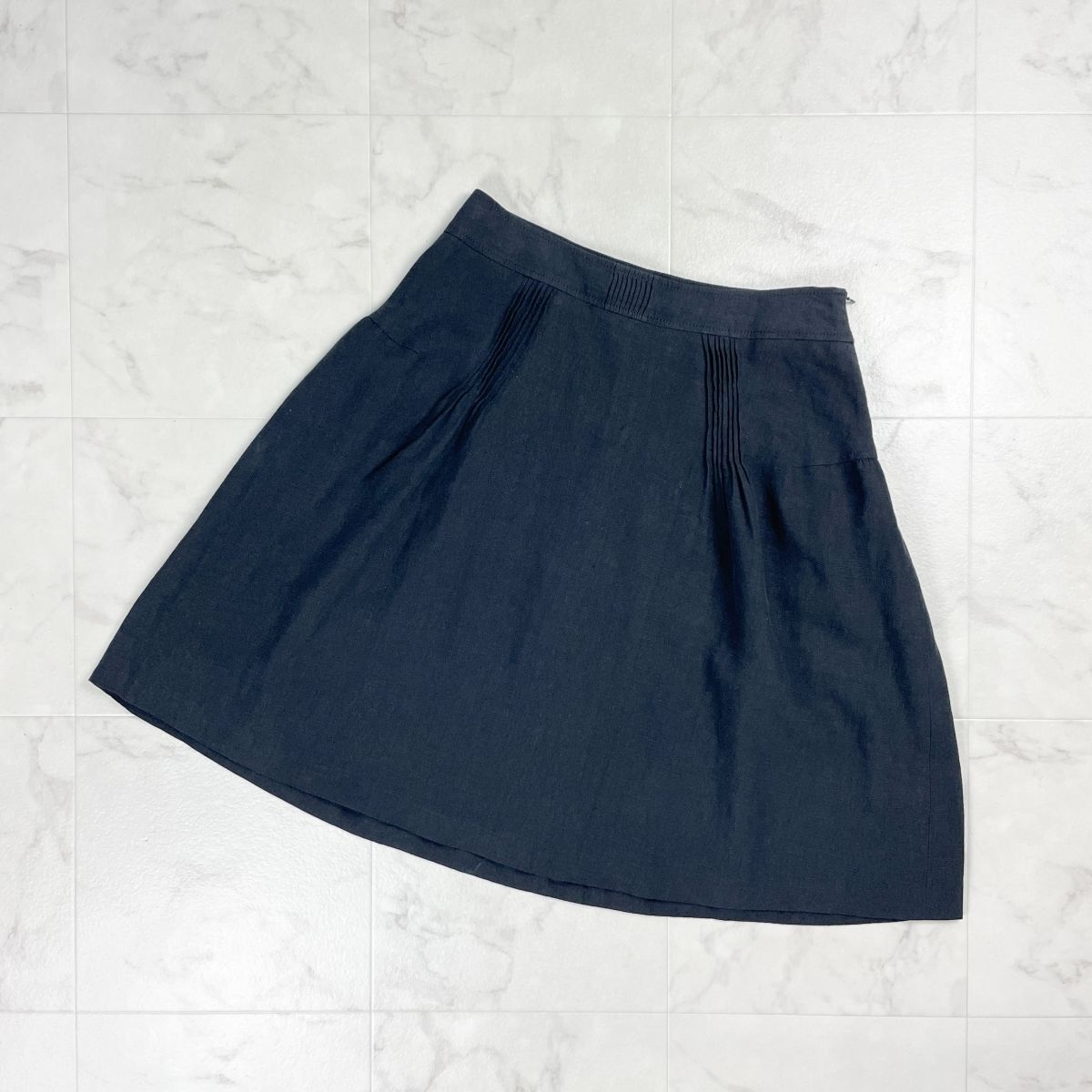 - Christian Lacroix クリスチャン ラクロワ リネン100% ピンタックデザインフレアスカート ミモレ丈 裏地なし ブラック 黒 サイズ42*GD1203