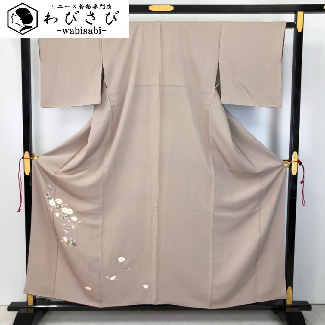 鴇色鼠のお色味に品のある花模様の柄裄がデザインされた素敵なお品でございます。