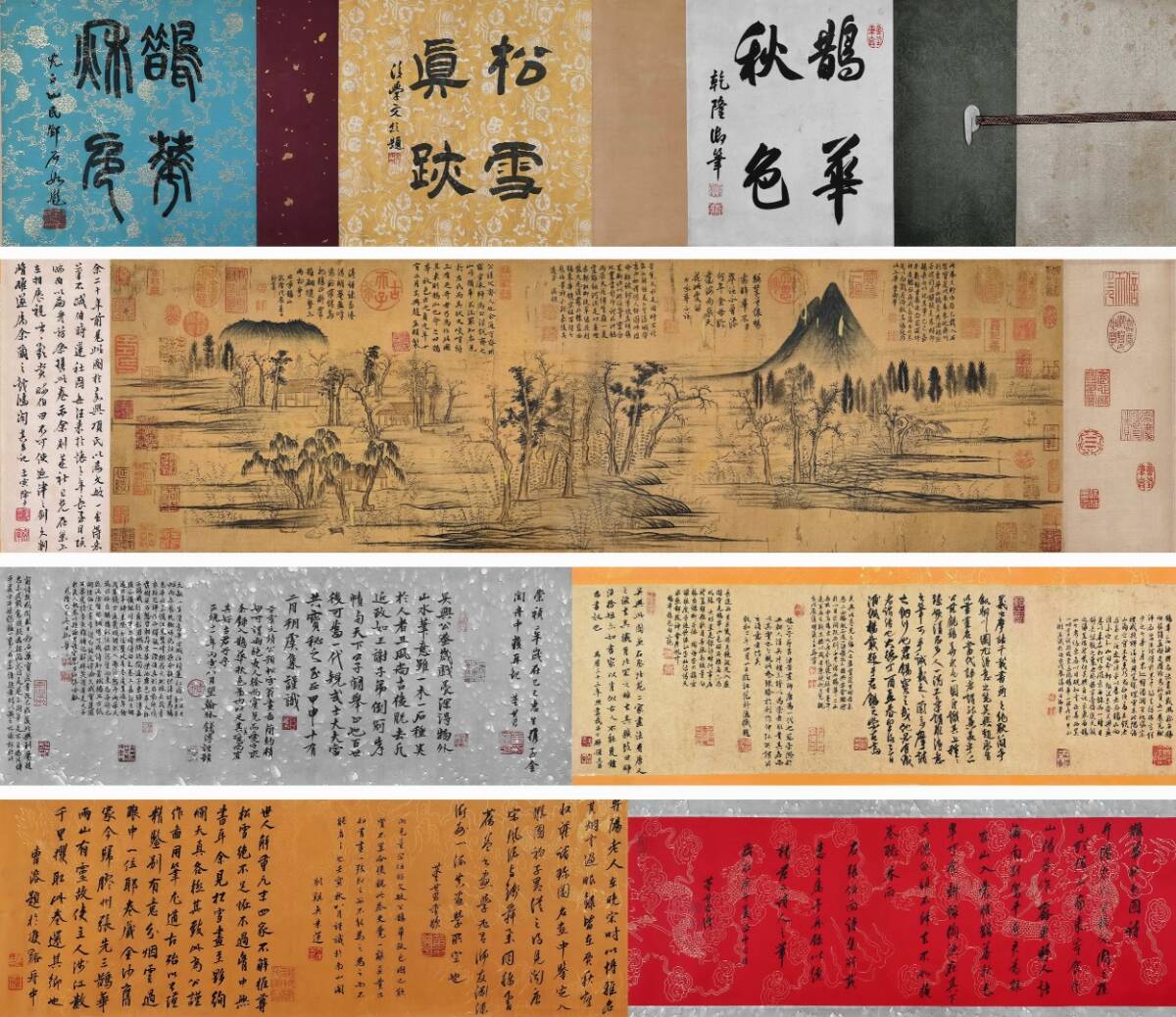 - 古美術 長巻 中国・元時代 「趙孟フ書」 絹本 【鵲華秋色図】 手巻 軸装 書道 巻き物 真筆逸品 肉筆保証 唐物 古画 LT-250923